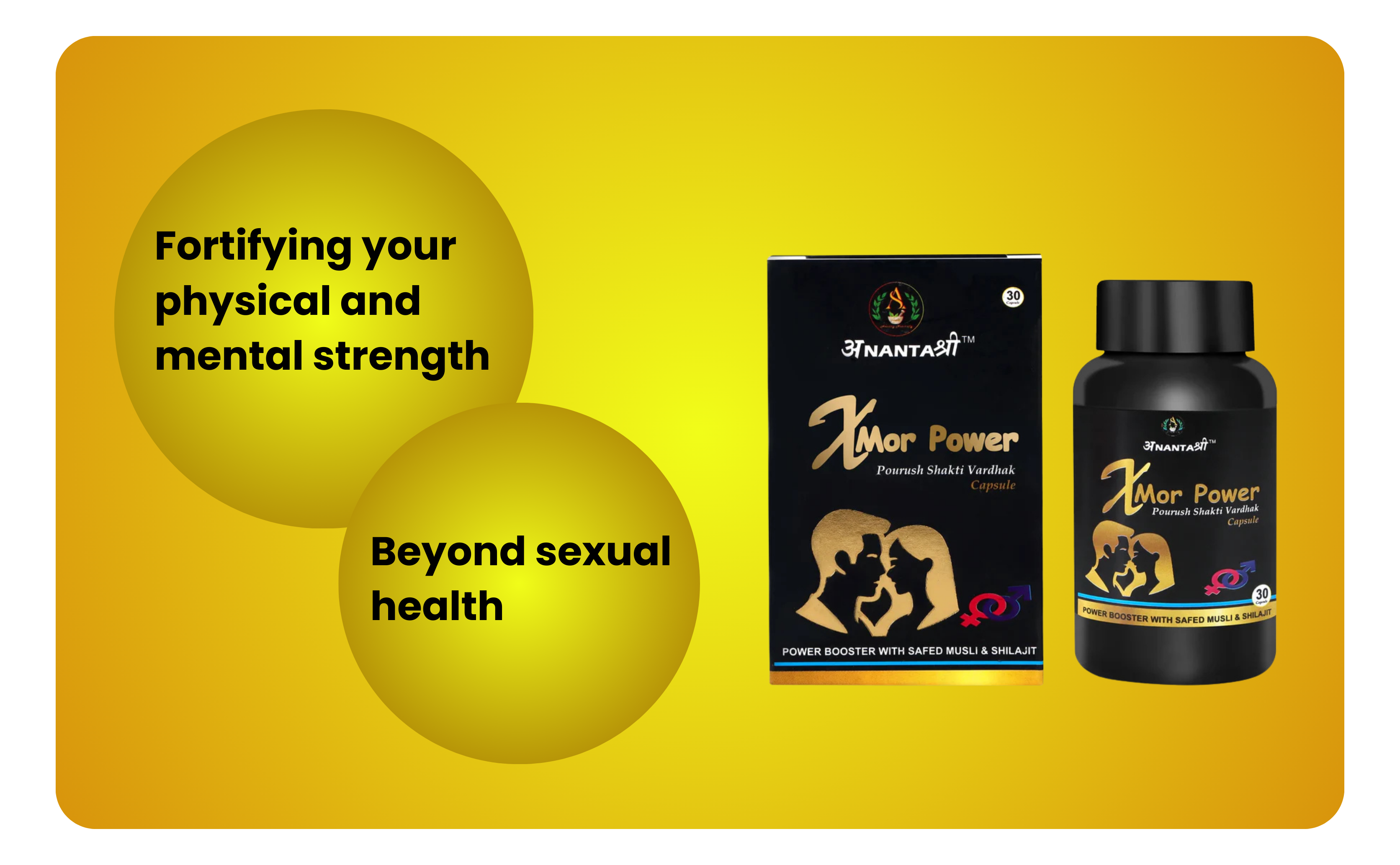 Introducing Xmor Power (Purush Shakti Vardhak Capsule), your ultimate solution for enhanced vitality and vigor. Expertly formulated, these aphrodisiac capsules are your key to overcome oligospermia and provide significant relief from erectile dysfunction. Beyond sexual health, Xmor Power combats body weakness, fortifying your physical and mental strength. Experience a renewed sense of energy and rejuvenation as these Ayurvedic capsules enhance your sexual intimacy and boost your confidence. Embrace a stronger you with Xmor Power, where every capsule is a step towards unparalleled strength and stamina.
